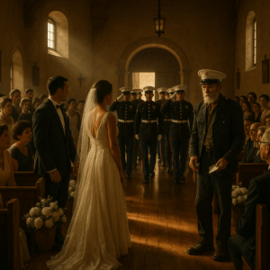 Los marines se habían formado en una fila formal, formando una guardia de honor que se extendía desde la entrada de la iglesia hasta el altar. El capitán Duncan se dirigió a los invitados reunidos. La Sra. Sánchez nunca supo que estaba ayudando a un héroe de guerra condecorado.
