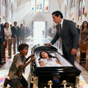 El funeral había sido silencioso —un multimillonario llorando la pérdida de su única hija—, pero el silencio se rompió cuando un chico negro delgado con la ropa rota corrió por el pasillo, gritando con voz temblorosa: “¡No la entierren! ¡Su hija aún vive!”.