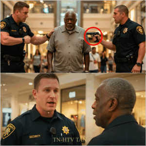 Dos guardias de seguridad privados, Derek Mills y Tony Reeves, se acercaron con paso decidido con sus uniformes negros impecables y sus placas relucientes. Derek, el más alto de los dos con los brazos cruzados, bloqueó el paso a Harold. “Señor, tenemos que hablar con usted”, anunció Derek con la voz autoritaria de alguien acostumbrado a que le obedezcan. Lleva más de una hora merodeando por las tiendas de lujo.