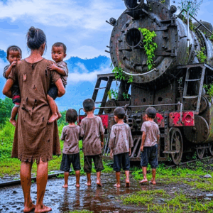 Estaban varados en medio de la nada, un monumento al progreso fallido, olvidados por la revolución o por alguna compañía ferroviaria quebrada. La naturaleza los estaba reclamando. El óxido cubría el metal como una enfermedad roja. Los niños mayores se detuvieron asustados. El tren parecía un animal muerto, colosal y siniestro.