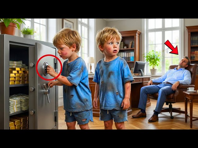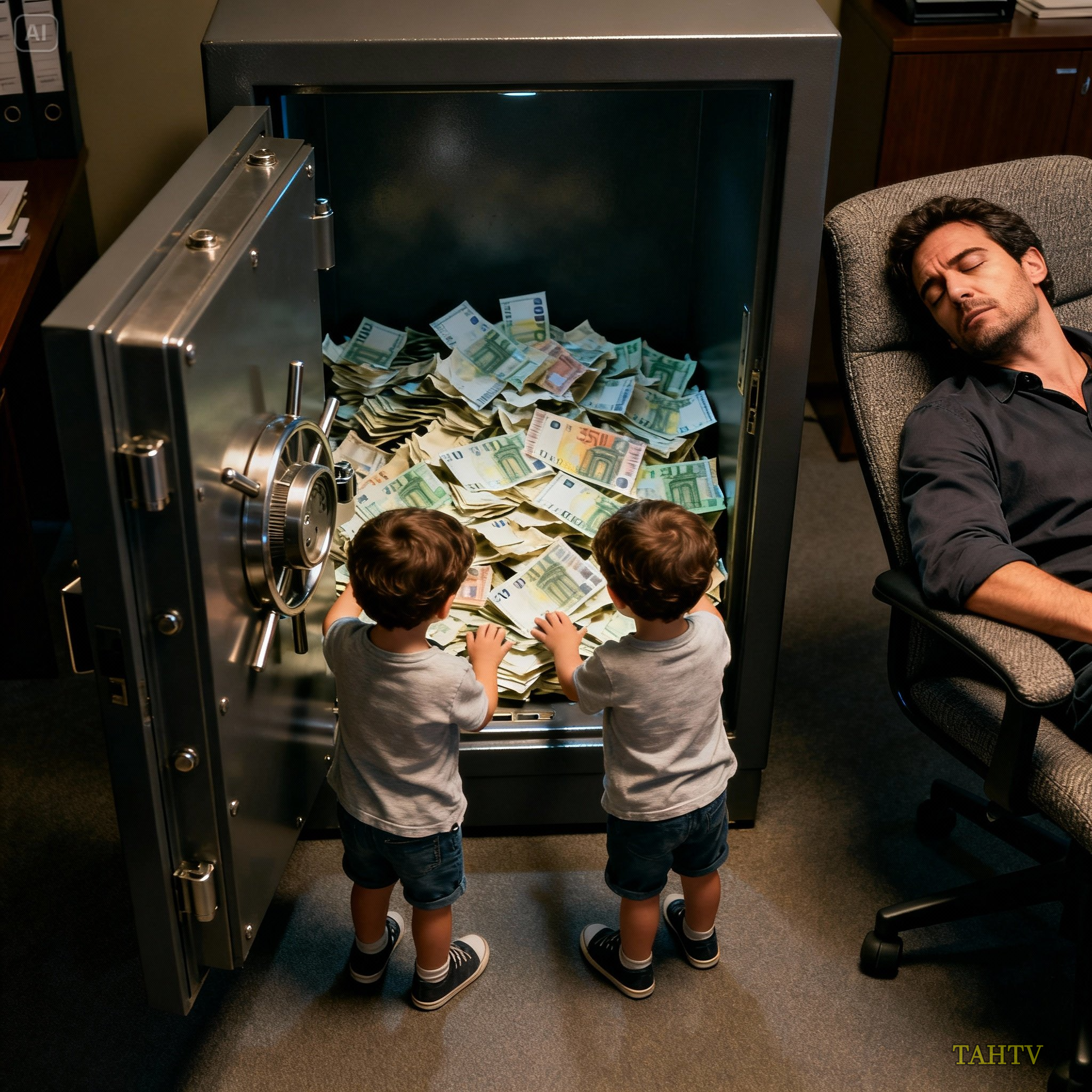 Alejandro dejó la caja fuerte completamente abierta, pilas dinero a la vista, miles de euros ahí desprotegidos. Fingió dormir en el sillón de la oficina mientras los hijos gemelos de 5 años de su empleada de limpieza entraban solos en la sala. Los niños se acercaron a la caja fuerte abierta.