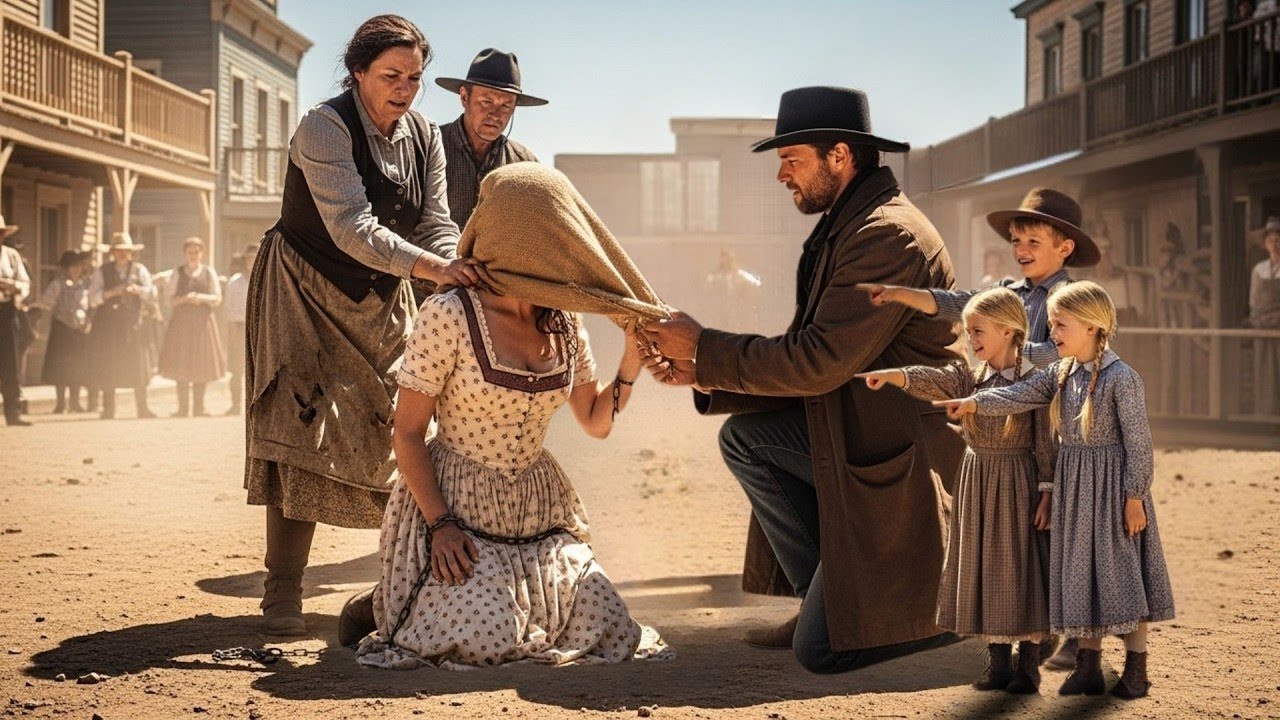¿Quién es?, preguntó Caleb, 6 años, pecoso y descalso, con curiosidad más que miedo. La cabeza de la muchacha seguía inclinada, el capuchón de arpillera intacto, las manos encadenadas descansando inmóviles en su regazo. Wes no respondió la pregunta. Es nuestra huésped”, dijo simplemente. “Trátenla con cariño.