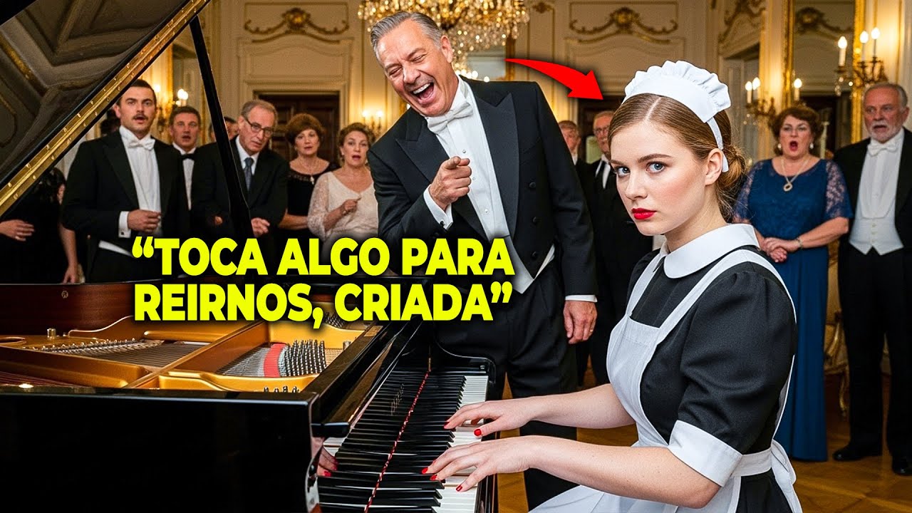 La obligó a tocar el piano como burla, pero en solo 10 segundos se arrepintió. No olvides comentar desde qué país nos estás viendo. Todo ocurrió en una noche de gala en la mansión de los Fon Albredcht, una familia de la alta sociedad europea conocida por su opulencia y arrogancia. Emilia, una joven criada recién llegada, había sido asignada para atender el salón principal mientras servía copas entre la música y las risas altisonantes.