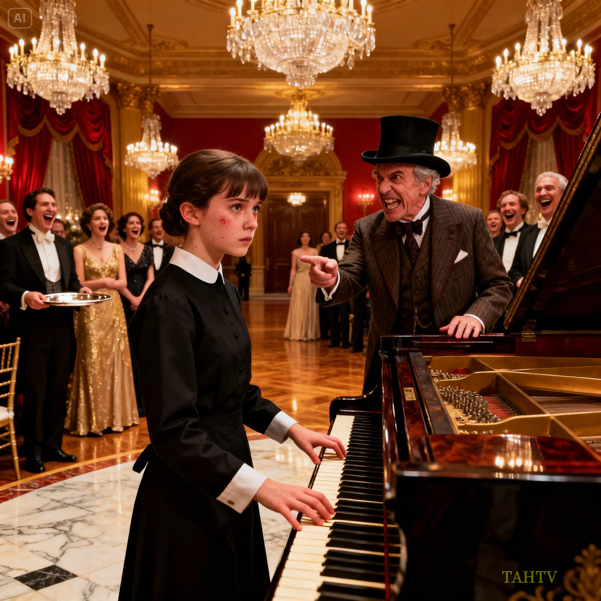 El silencio era espeso, algunos murmullos se deslizaban por los labios de los invitados como veneno. Emilia alzó la vista solo un segundo, captando la expresión de burla del hombre. En ese instante, bajó las manos y las dejó descansar sobre las teclas. Aún no había tocado una sola nota, pero su sola presencia ya incomodaba a más de uno.
