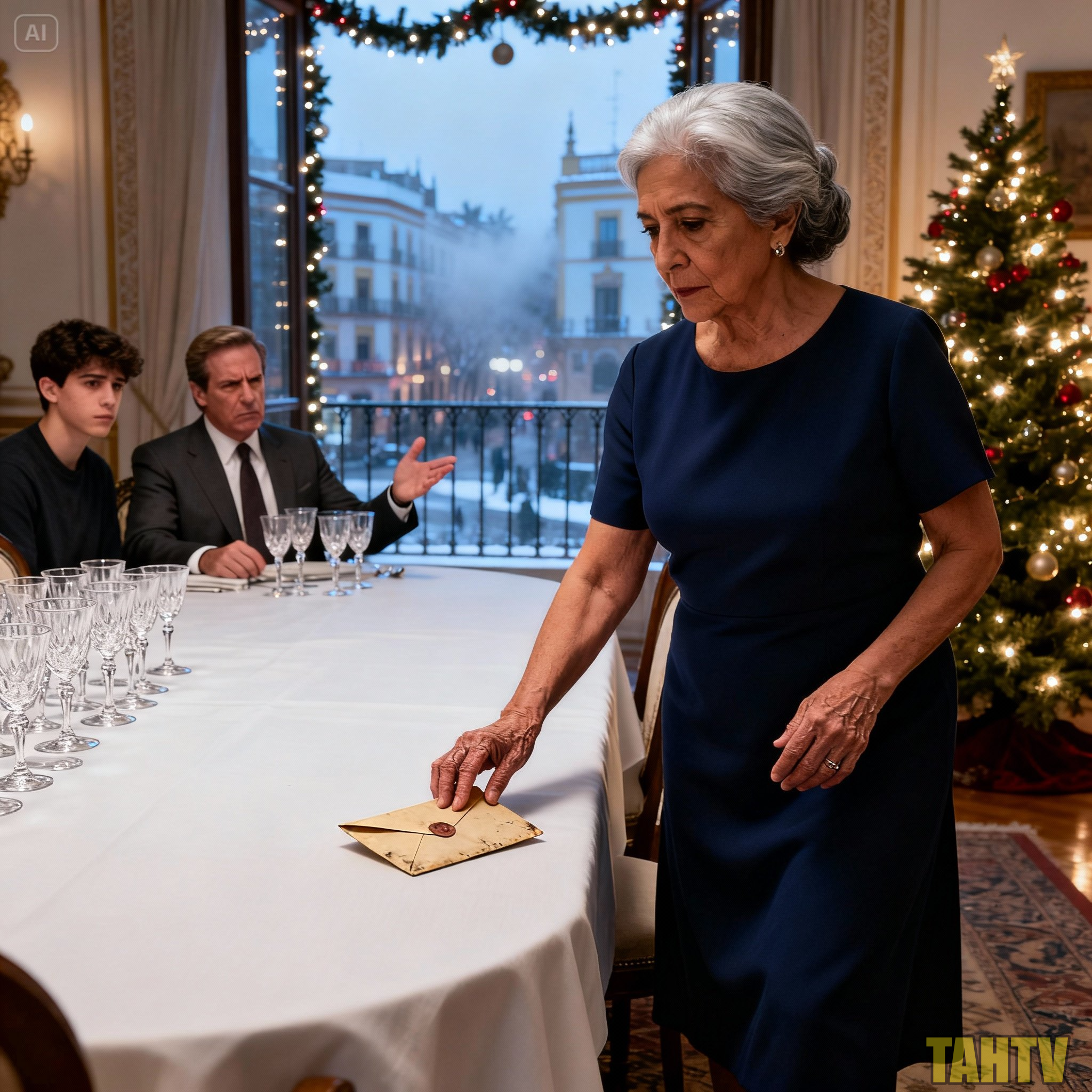 Y así, en medio del brillo navideño y de las conversaciones rotas, ocurrió algo que solo ella parecía entender. Una puerta emocional se cerraba para siempre y nadie en la mesa lo notó. Mientras recoge los restos del vaso, doña Carmen levanta la mirada por última vez, sin decir una sola palabra.