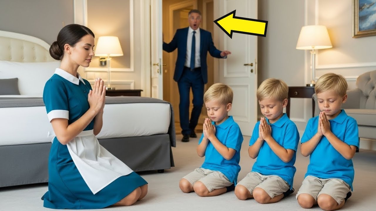“Señor, ya habíamos terminado la limpieza”, dijo ella rápidamente hablando a mil por hora. “El cuarto está ordenado, las camas están hechas. No estábamos perdiendo el tiempo, se lo juro. Solo solo nos tomamos un minuto. Por favor, necesito este trabajo. No me despida. La súplica de la chica le golpeó el pecho, pero Alejandro no estaba pensando en el trabajo ni en la limpieza. Su mente estaba anclada en la imagen de sus hijos de rodillas.
