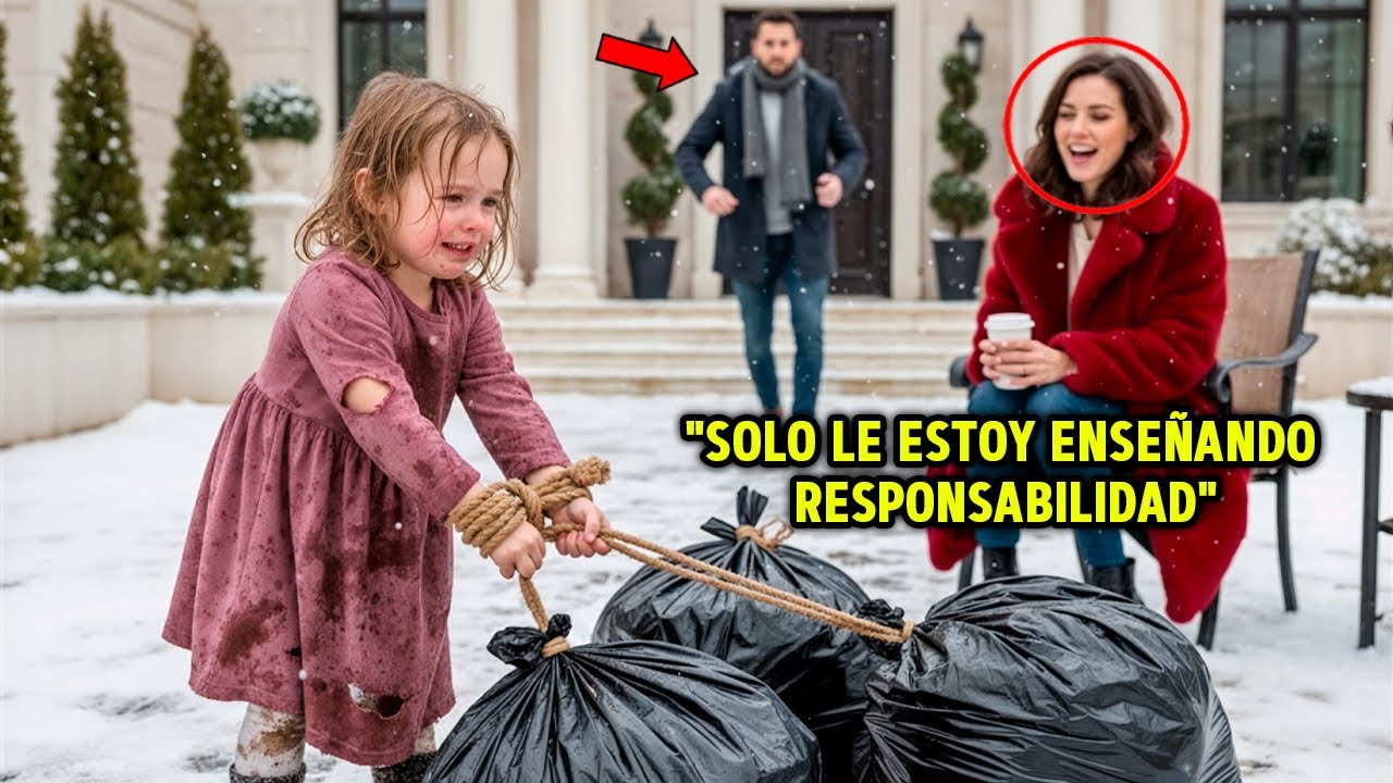 La sangre goteaba de sus pequeños dedos sobre la inmaculada nieve blanca. Las gotas carmesí formaban círculos perfectos sobre aquel lienzo de alabastro. Elena Montes, de apenas 8 años, luchaba contra una enorme bolsa de basura negra. Su diminuta figura se doblaba bajo el peso.