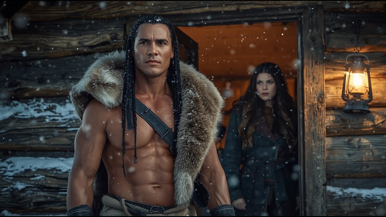 A través del torbellino apareció un hombre alto de hombros anchos envuelto en un curtido abrigo de piel. Tenía el cabello oscuro, largo y trenzado de forma irregular, endurecido por el hielo. Sus labios estaban azulados, su respiración entrecortada, pero sus ojos, oscuros, afilados y sorprendentemente bellos, mostraban tanto agotamiento como humanidad.