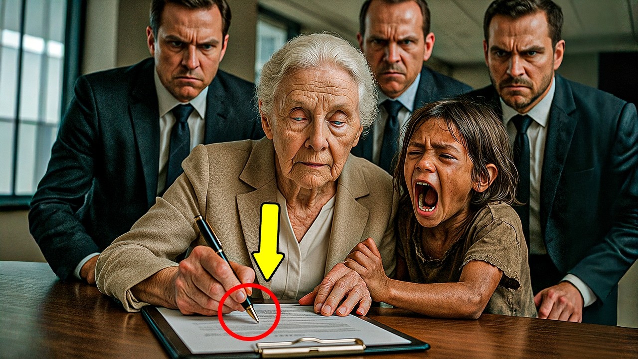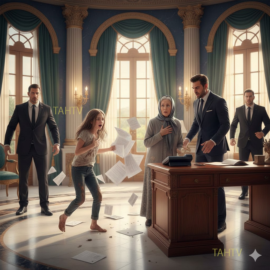 Cuando una millonaria ciega estaba a punto de firmar un contrato con su huella digital, entregando todo el control de su fortuna a sus hijos, una niña de la calle irrumpió en su mansión gritando, “Por favor, señora, no firme eso. No lo firme, por el amor de Dios.” En cuanto la niña saltó frente a la mujer, arrancándole el documento de las manos y rasgándolo en mil pedazos, la millonaria notó algo impactante. Se llevó las manos a los ojos, completamente incrédula.